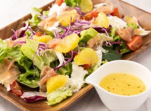 フレッシュな野菜に、湘南ゴールドの爽やかなドレッシングを合わせました。